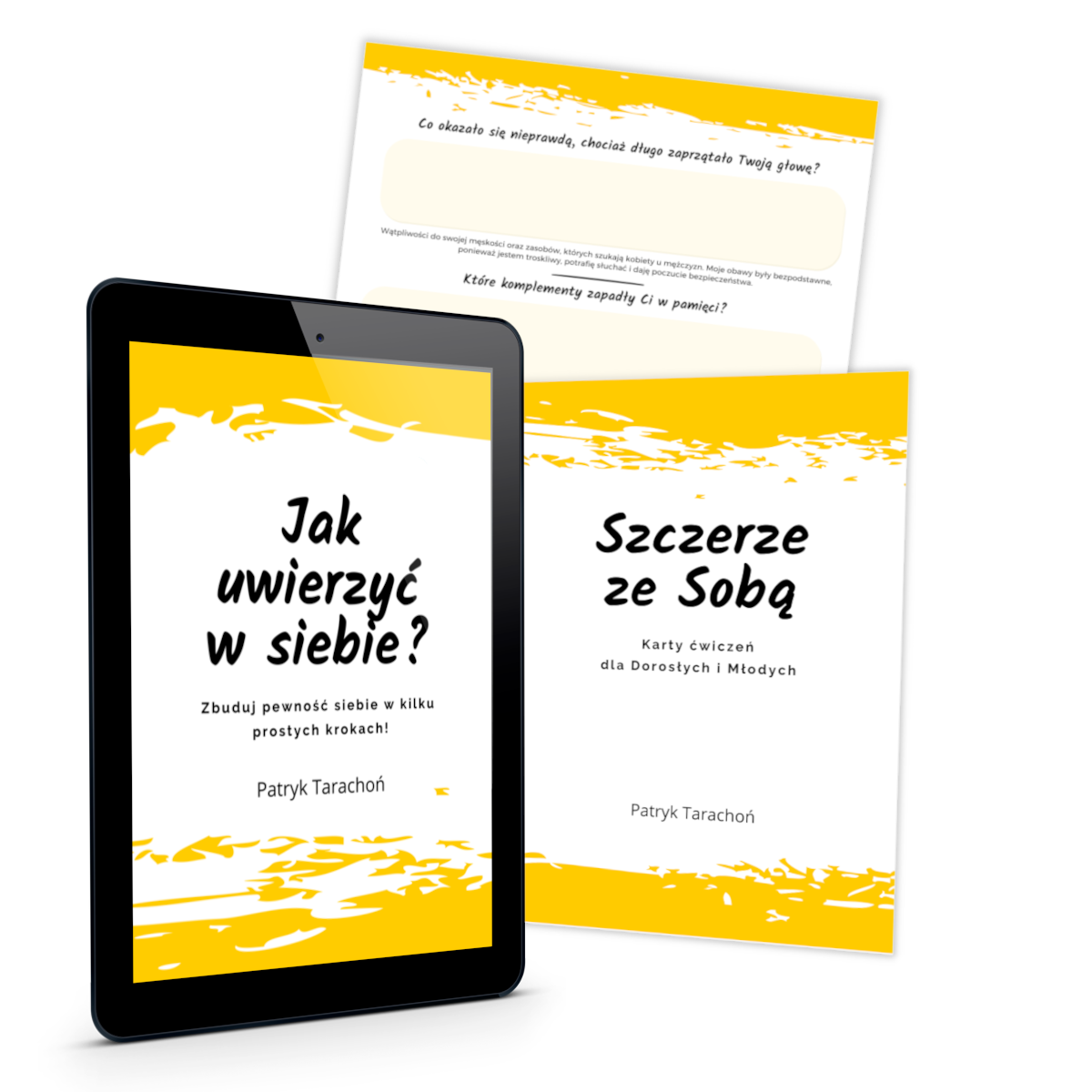 Oprócz bonusu otrzymasz dostęp do kart ćwiczeń „Szczerze ze Sobą”. Zadam Ci w nich kilka przyjaznych pytań, dzięki którym łatwiej zacząć budowanie wiary w siebie.
